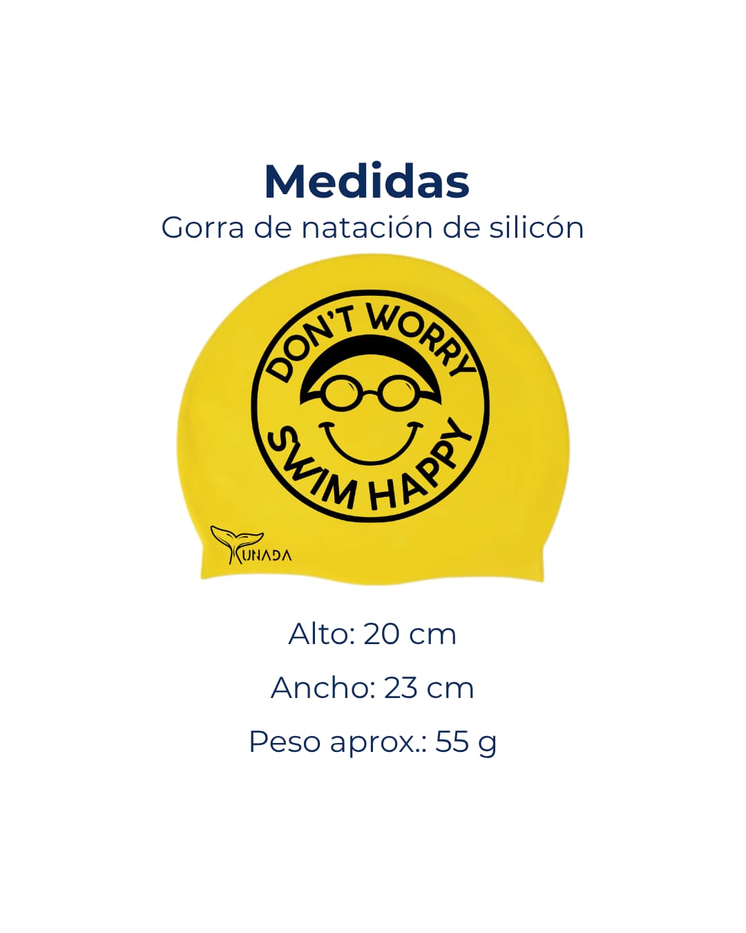 Si buscas una gorra de natación diferente, con actitud positiva y una imagen que conecte de inmediato con el gusto por el agua, Don’t Worry Swim Happy es una gran opción para tu colección.