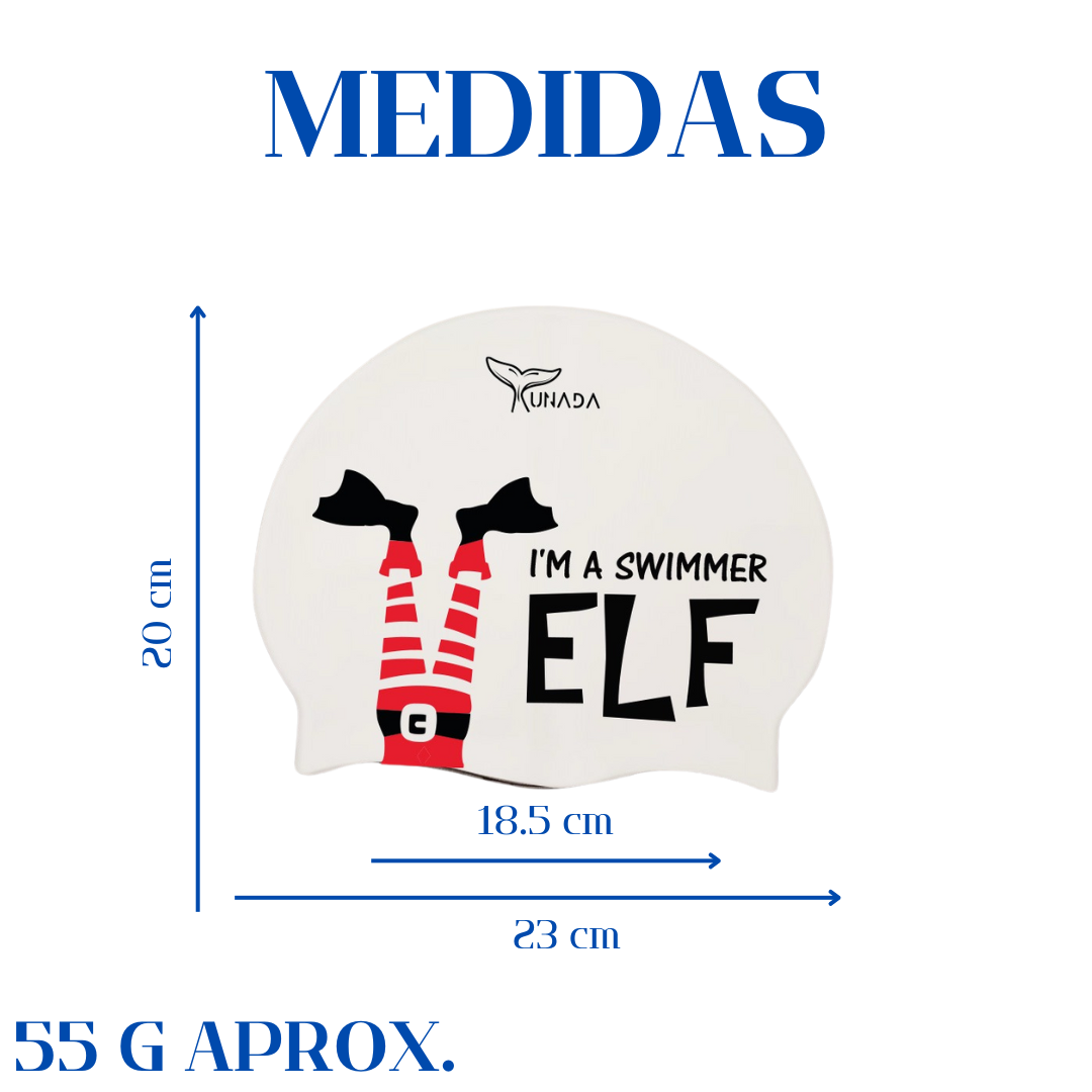 La gorra Swimmer Elf combina el espíritu navideño con el amor por la natación en un diseño lleno de humor y originalidad, que deja claro que aquí se nada, ¡no se camina!